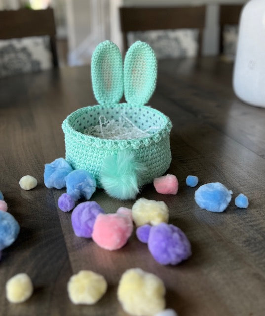 This product is a DIGITAL instant download (not a finished item) for a crochet pattern to make your own Bunny Basket(s). When complete, the finished items will be approximately: